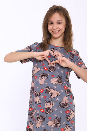 Детская сорочка с короткими рукавами для девочек из легкого трикотажа. Домашняя одежда для девочек должна быть удобной, функциональной и, конечно же, красивой. Сорочка для девочки с принтом понравится девочкам подростками и девочкам школьного возраста. Сорочка для отдыха и сна приятна на ощупь и не раздражает кожу. Сорочка хлопковая позволит почувствовать мягкость и комфорт во время сна. Ночная рубашка для девочки не стесняет движений и позволяет коже свободно дышать.