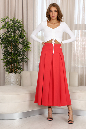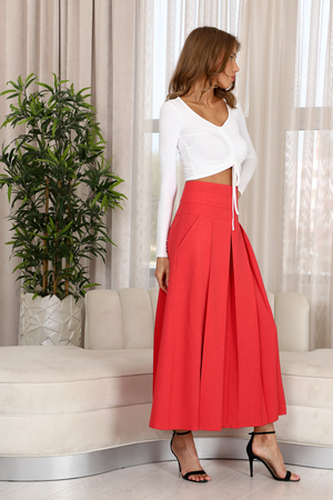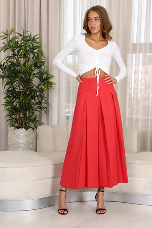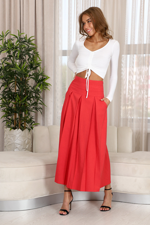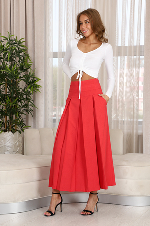 Длинная юбка в складку на кокетке с карманами прочно обустроилась в современном модном мире, и все больше женщин выбирает этот фасон для создания как повседневных, так и праздничных образов. Кокетка отлично смотрится на женщинах любого возраста и фигуры, придавая особую элегантность и женственность. Карманы дополнят образ и добавят практичность всему образу