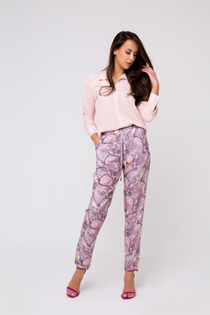 Новая весенняя коллекция от Рапоза отличается воздушными образами и пастельными тонами. Абсолютная нежность! Брюки прямого кроя с отстрочкой и боковыми карманами. Пастельные оттенки лилового в сочетании с принтом в стиле абстракция создают летящий и элегантный образ! Ограниченная коллекция только для этой весны!