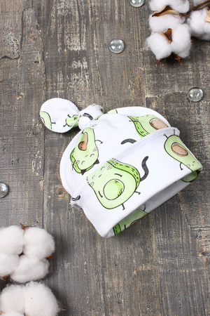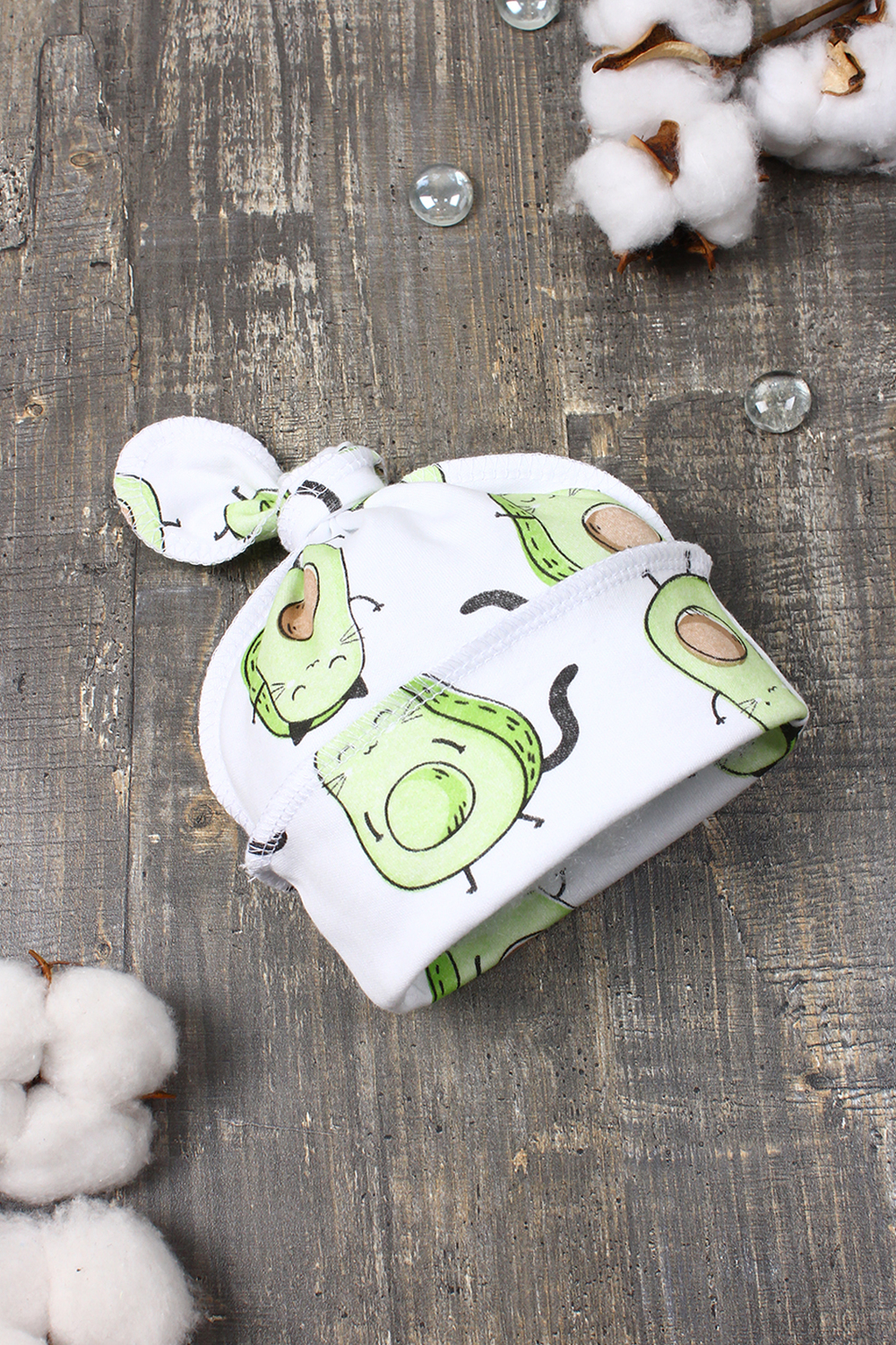Шапка с узелком необходимая вещь в гардеробе каждого малыша. С помощью узелка можно регулировать глубину шапочки. Благодаря швам наружу ее можно использовать с рождения. Вашему ребеночку будет комфортно. Изготовлена из 100% хлопка (Интерлок), высшего качества Пенье. Шапочка станет отличным дополнением к комбинезону, пелёнке-кокону и другим изделиям