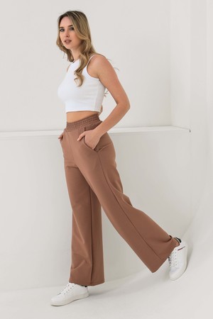 Модные брюки палаццо с высокой посадкой помогут Вам создать стильный образ на каждый день. Мягкая эластичная широкая резинка делает брюки очень удобными. Она не деформируется в процессе эксплуатации, так как прошита на поясной машине. Брюки свободного кроя красиво сидят на любой фигуре, такая модель брюк визуально удлиняет ноги. Брюки выполнены из плотной износостойкой ткани, приятной к телу. Широкий размерный ряд позволяет подобрать подходящую модель девушкам, женщинам больших размеров. Брюки хорошо гармонируют с блузками, кроп топами, футболками. На фото модель рост 170см.