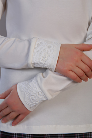 Элегантная и нарядная блузка для вашей маленькой принцессы! Нежная трикотажная блуза для девочки с кружевом станет замечательным выбором для 1 сентября. Ведь осень уже за углом и модная школьная форма для детей - это то, что совсем скоро понадобится каждому школьнику. Воротник стойка декорирован изящным кружевом. Стильная кружевная кофта лонгслив от бренда JerseyLab - это хлопок, нежный трикотаж, который прекрасно дышит и не вызовет аллергию, идеальный вариант для школы для детей и подростков. Такая блузка с длинным рукавом отлично подойдет и как повседневная детская кофточка и как нарядная блузка на праздник или на выпускной. Она превосходно будет смотреться и с различными детскими юбками, и со стильными и удобными брюками. Также очень стильный образ можно получить, сочетая ее со школьным или классическим сарафаном, или комбинезоном. Нежное кружево вокруг горловины придает изящность и оригинальность. Комбинируя эту блузу с различными жакетами и кардиганами, ваша маленькая модница сможет носить ее и в прохладное время года, как в демисезон, так и в зимний период. Пусть ваша стильняшка всегда чувствует себя самой красивой, а мы позаботимся о ее комфорте и безопасности, производя самую стильную и качественную одежду для детей!