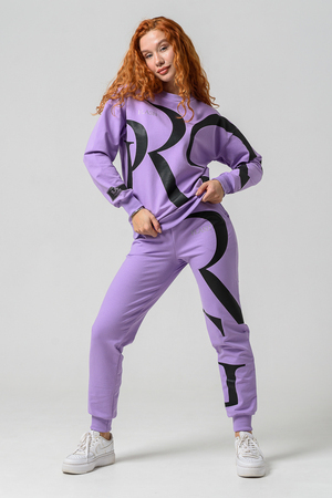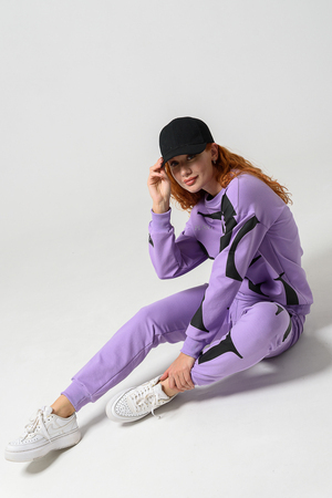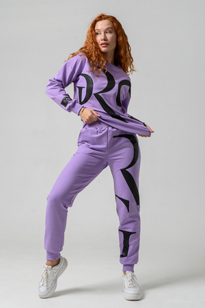 Женский костюм с брюками и толстовкой. Материал футер 2-х нитка с лайкрой. По все длине брюк и толстовки печать. Толстовка с манжетами, по низу брюк резинка.