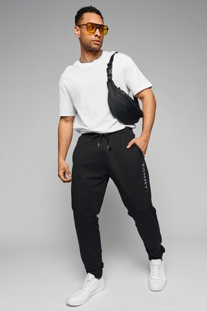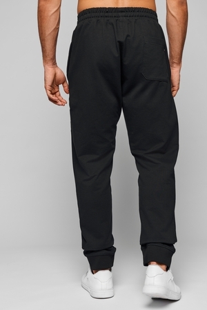 Базовые трикотажные мужские брюки. Выполнены из футера 2‑х нитки хлопка с лайкрой качества пенье компакт. Наши спортивные штаны мужские летние или осенние, т.к. они пошиты из полотна без начеса. Регулировать посадку брюк можно с помощью шнурка на поясе. Небольшие размеры часто покупают как штаны для подростков и очень часто наши брюки берут как мужскую одежду для дома (качественное мужское трико) или для посещения спортивного зала. В меру широкие брюки подходят и людям с большими бедрами т.к. посадка у наших мужских трикотажных брюк полноценная, а не низкая. Иногда брюки трикотажные на манжетах снизу называют джоггеры мужские, но пожалуй все таки это в большей степени штаны из плотной ткани, а не хлопковые брюки из футера.