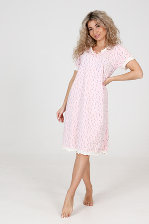 Представляем Вашему вниманию легкую женскую сорочку, сшитую из воздухопроницаемой кулирки - 100% натуральный хлопок. Модель имеет интересную расцветку, которая красиво смотрится и поднимает настроение. Изделие хорошо сидит на фигуре и подчеркивает её достоинства.