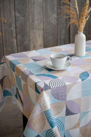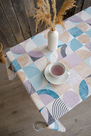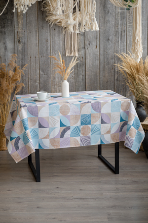 Скатерти из рогожки давно стали незаменимым атрибутом современной кухни. Скатерть Марципан явное тому подтверждение, спокойный разноцветный узор добавит новых красок вашей кухне и отлично подойдет к любому интерьеру. Рисунок на полотне напоминает мозаику, небольшая клетка с разными узорами не оставит ваш стол без внимания. Изделия из рогожки не требуют особого ухода, легко переносят машинную стирку, не линяют и не теряют цвет.