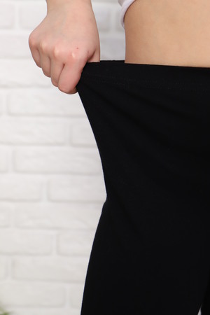 Лосины для девочек дошкольного и младшего школьного возраста, из трикотажного полотна кулирка с лайкрой. В верхний срез лосин втачена резинка, шириной 2,5см. Низ и верх лосин подогнуты.