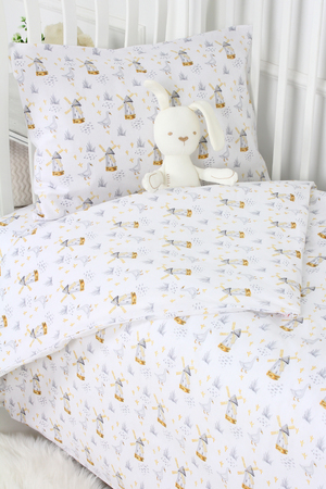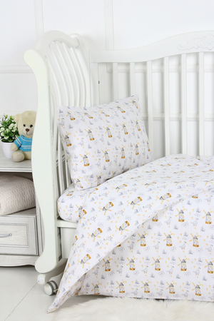 Комплект постельного белья с простыней на резинке на прямоугольный матрас размером 120х60см в детскую кроватку, из яркой современной расцветки. Поплин 100% хлопок. Размер пододеяльника 110х148см, наволочка 40х60см. Ткань абсолютно гипоалергенна. Материал высокого качества сохраняет форму и легко стирается. Хлопок обеспечивает отличную терморегуляцию и воздухообмен, чтобы малыш не потел. Ваш ребёнок всегда будет чувствовать себя комфортно и уютно.