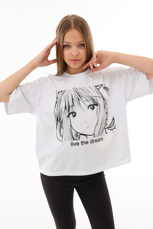 Укороченная подростковая оверсайз футболка выполнена из натурального хлопка. Идеальна для школы, на физкультуру и как повседневный вариант для детей и подростков. Топ имеет износостойкий принт черного и лилового цвета с надписями. Подойдет для занятий спортом, а также для дома. Дышит и впитывает влагу, в ней хорошо бегать. Это базовая вещь в гардеробе для детей. Однотонная майка подходит для лета и для зимы, ведь её можно носить под кофтой, свитшотом и худи. Дети точно оценят прикольный рисунок аниме. Футболка имеет размер oversize и благодаря свободному покрою почти не ощущается на теле и не сковывает движения. Не деформируется после стирок, а принт не побледнеет и не потрескается. Вещь прослужит долго и никогда не станет лишней в гардеробе! Мы уверены, что высокое качество мягкого легкого хлопка даст Вам ощущение комфорта и непринуждённости. Размерный ряд: 134-140, 146, 152, 158, 164. Желаем приятных покупок с брендом Modestreet.