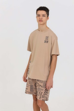 Футболка для мальчика классического прямого кроя. В зависимости от фигуры и приобретённого размера она может выглядеть как оверсайз. В комплекте с шортами арт. 1578 получается молодёжный летний костюм, который будет уместен в абсолютно любой ситуации. В нём можно пойти на практику в школу, на тренировку в спортзал, на утреннюю пробежку или вечерний кроссфит. Отличное решение для поездки на море или просто в южные регионы. Футболка неотъемлемая часть гардероба всех мальчиков и девочек, юношей и девушек, мужчин и женщин. В составе ткани подростковой футболки преобладает хлопок, который делает ношение этой модели комфортным на протяжении всего года. Добавленный эластан придаёт натуральным нитям ткани упругие свойства, а также делает её поверхность гладкой и шелковистой. Полотно с эластаном способно увеличиваться в размере в несколько раз без потери своей формы. В коллекции представлены футболки в двух цветах: черный – лаконичный, строгий, серьёзный; бежевый – мягкий, спокойный, умиротворяющий. Приобретая сразу два цвета, вы получаете разные образы и, конечно, настроение, а это бывает так важно в подростковом возрасте выразить через одежду своё личное отношение к миру! Особой острой индивидуальности совсем не детской футболке придают принты, выполненные высококачественными красками, которые остаются в первоначальном виде даже после многократных стирок. Немаловажная деталь, что рисунки напрямую перекликаются с шортами, которые мы предлагаем в комплект футболкам, при этом выглядят абсолютно самодостаточно, поэтому наши футболки можно легко комплектовать с любыми джинсами, брюками, спортивными трико, домашними бермудами, шортами любой длины. Экспериментируйте с образами совместно с брендом Modestreet!