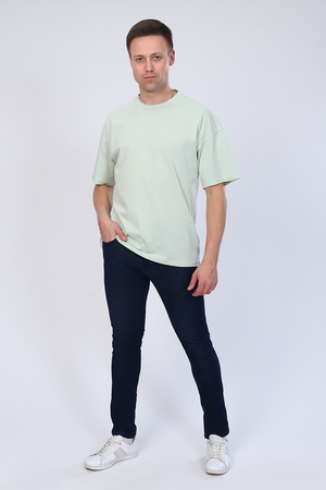 Футболка мужская хлопковая свободного кроя "оверсайз" прекрасно дополнит и классический образ, и спортивный лук! Прямой силуэт, спущенный, втачной рукав, горловина обработана обтачкой из основной ткани. Горловина спинки внутри усилена надстрочной планкой из кулирки. Низ изделия и рукава обработаны швом в подгибку.