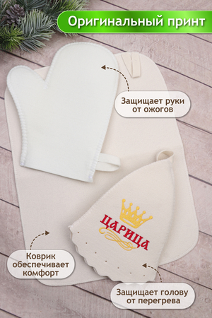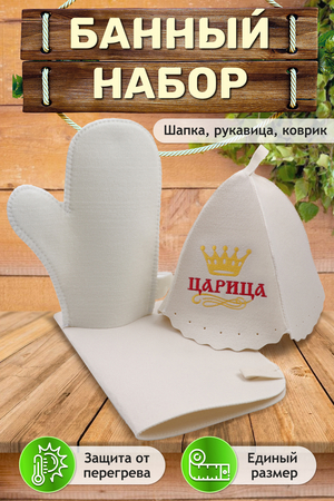 Наш оригинальный набор для бани включает в себя шапку, рукавицу и коврик. Это незаменимые аксессуары для любителей попариться в бане и сауне. Шапка защитит волосы от сухости и ломкости, голову от перегрева и предотвратит появление головокружения. Рукавицы – это повышение комфорта при использовании банного веника и безопасность ваших рук от появления ожогов. А индивидуальный коврик защитит от высоких температур при контакте с горячей лавкой в парилке. Оригинальная вышивка выполнена качественно и не сотрётся в процессе использования. На изделиях имеются петельки, с помощью которых их можно повесить на крючок в предбаннике. Такой набор станет отличным подарком для любителей отдыха в бане или сауне.