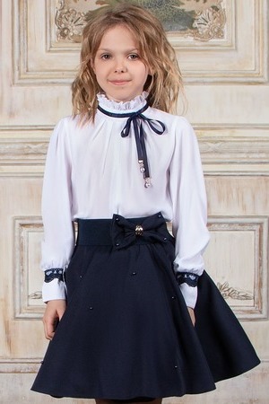 Блузка подростковая школьная с пышными рукавами, воротником стойкой и кружевным декором. Блуза для девочки подростка имеет дополнительный слой из подкладочной ткани спереди, что делает ее непрозрачной и более комфортной в носке. Благодаря свободному крою кофточка хорошо подходит для худых и для полных девочек. Нарядная блузка - отличный вариант для школы, и торжественных мероприятий: 1 сентября, линейка, выпускной, 8 марта. День рождения; подойдёт к школьному сарафану, юбкам любого фасона, брюкам, кюлотам, палаццо, к юбке - шортам. Детская блузка выполнена из мягкой дышащей вискозы, с добавлением нейлона и спандекса. Такая одежда отлично держит форму, не садится, не образует катышек на поверхности, имеет эффектный внешний вид. Желательно стирать кофту в режиме бережной стирки при 30 градусах. Не рекомендуется использовать сильные моющие или отбеливающие средства. Нет необходимость гладить блузку - достаточно встряхнуть после стирки и высушить на плечиках. Модель представлена в нескольких цветовых решениях: белый, голубой, синий, кремовый или ванильный и розовый. Станет приятным и неожиданным подарком дочке, внучке, племяннице.