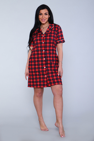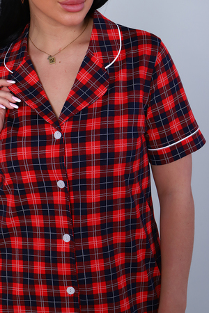 Женский халат-рубашка свободного кроя в клетку на пуговицах длиной выше колена с коротким рукавом. Воротник фигурный, рубашечного типа, обработан кантом. Манжет рукава также обработан кантом контрастного цвета. Для удобства халат-рубашка имеет два кармана в боковых швах со скошенным входом. Модель выполнена из высококачественного 100% хлопка, на ощупь ткань напоминает фланель, что создает комфорт и уют при носке. Большой выбор приятных расцветок, принт ткани в виде крупной клетки. Можно носить дома как халат-рубашку или на улице как платье-тунику. Подойдет медикам, в качестве униформы. Любителям носить одежду в обтяжку можно брать на размер меньше. Подойдет на любую фигуру, скроет недостатки. Отлично смотрится на беременных. Широкий размерный ряд с 44 по 62. Отличный подарок любимым на праздник и по любому поводу!