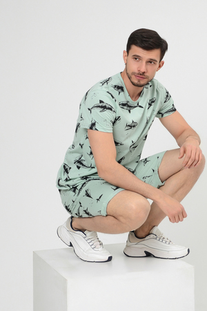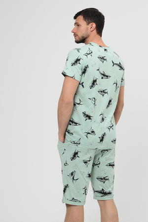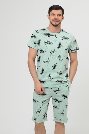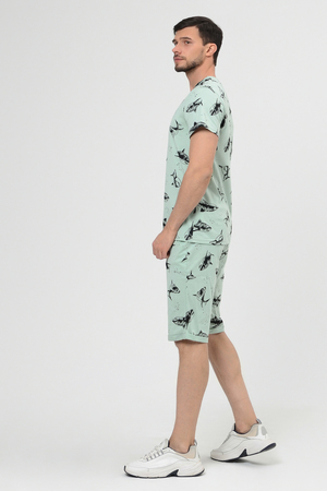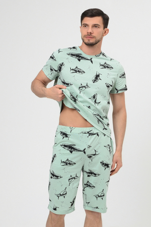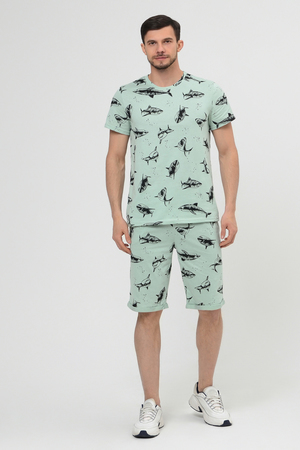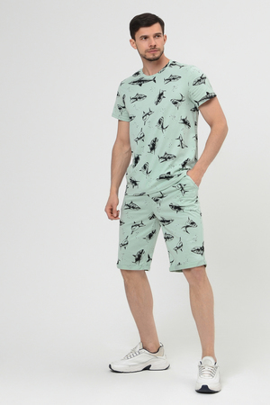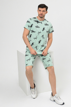Мужской костюм летний, выполнен из натуральной ткани 100% хлопка. Модель для повседневной, домашней носки, состоящая из шорт и легкой, свободной футболки, с коротким рукавом. Комплект костюма состоит из широкого размерного ряда, и важно отметить, что включает в себя большие размеры. Шорты на резинке имеют 2 боковых кармана, также эластичный пояс