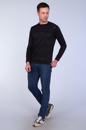 Модный и стильный мужской джемпер, длинный рукав на манжете. В плечевых швах вставки из эко-кожи. Округлый воротник, низ изделия также на манжете. Маломерит. Джемпер подходит для среднего и маленького роста. Практично и удобно.