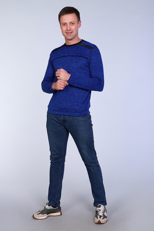 Модный и стильный мужской джемпер, длинный рукав на манжете. В плечевых швах вставки из эко-кожи. Округлый воротник, низ изделия также на манжете. Маломерит. Джемпер подходит для среднего и маленького роста. Практично и удобно.
