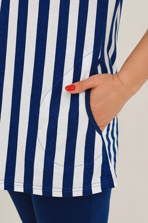 Женский костюм с бриджами полуприталенного силуэта. Длина бридж ниже колена. Кокеткка на футболке в тон с бриджами. Футболка с коротким рукавом и карманами.