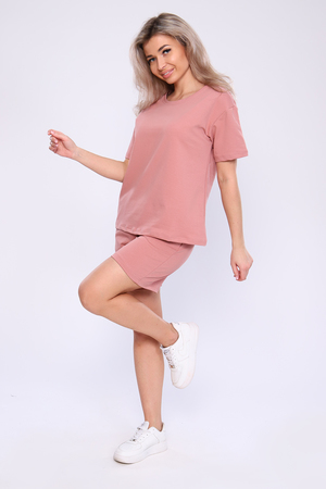 Костюм футболка с короткими рукавами и свободные шорты с карманами. Отличный вариант для прогулок или просто домашнего использования.