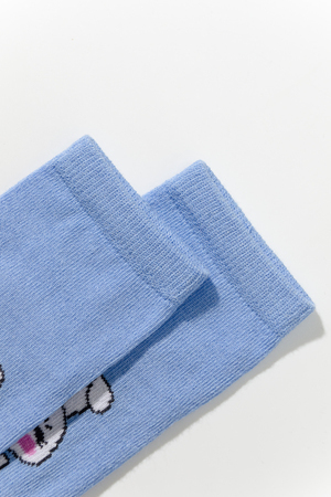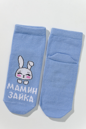 Чудесные детские носочки, комплект из 3-х пар. Одна с изображением Зайки и надписью "Мамин Зайка", вторая - в полоску, третья однотонная.