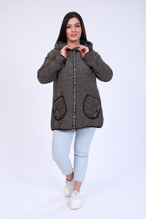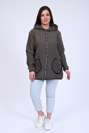 Жакет женский на молнии с капюшоном и карманами. На карманах модный принт.Теплый и удобный.