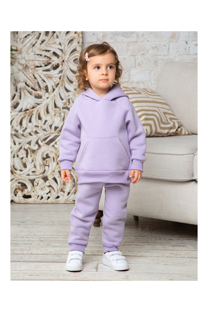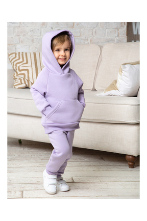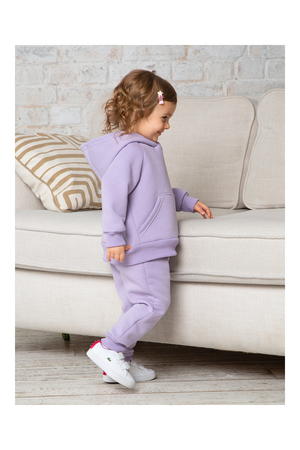 Костюм "Малинка" для девочки, предназначен для носки в прохладных помещениях и прогулке на улице, выполнен из плотного футера с начёсом: - толстовка на поясе, с капюшоном, рукава на манжетах, на полочке карман "кенгуру"; - штанишки на манжетах, пояс на резинке.