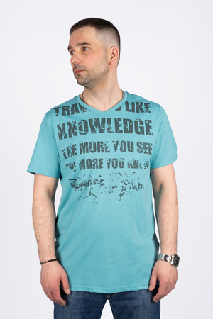Эта мужская футболка сделана для тех, кто разделяет философию путешествий и не привык сидеть в четырех стенах. Она для любознательных, ярких и многогранных личностей, которые стремятся к новому опыту и знаниям. Сделана из мягкого трикотажа, приятного коже. Прямой силуэт футболки, втачной рукав, горловина V-образная, обработана воротником из рибаны. Горловина спинки внутри укреплена настрочной планкой из кулирки. Низ изделия и рукавов обработан швом в подгибку. На полочке принт шелкография.
