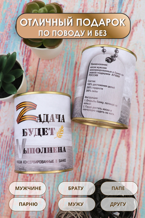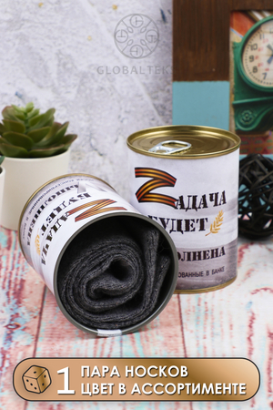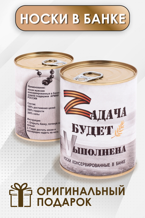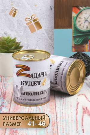 Носки в консервной банке - отличное решение для подарка мужчине на любой случай. Внутри банки носки мужские 1 пара, состав 80% хлопок, 15% полиамид, 5% лайкра, универсального размера 41-46. Использование высококачественного материала позволяет коже "дышать", а добавление небольшого количества синтетических нитей делает носки долговечней.
