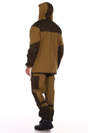 Капюшон притачной по горловине, с кулисой по лицевому вырезу, стягивающейся шнуром. По передним частям рукавов внизу кулиса. Манжеты притачные, стянутые эластичной тесьмой.