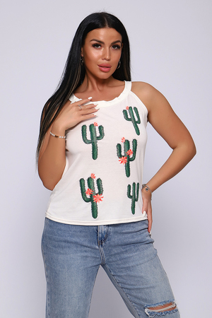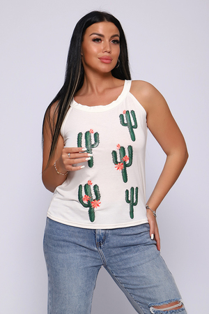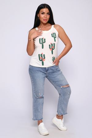 Топ женский с оригинальным принтом. Летний сезон дает возможность насладиться легким вариантом топа с широкими бретелями, выполненным из струящейся вискозы. Ткань- необыкновенно легкая, воздушная, приятная к телу, не сковывает движений, деликатно облегая фигуру. Цветовая гамма данной модели позволит соответствовать окружающей яркости природы, луговому раздолью, морским пляжам.