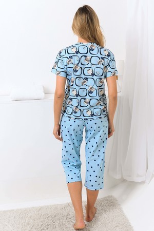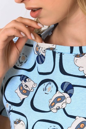 Уютная пижамка с весёлыми енотами. Футболка со спущенной линией плеча, бриджи свободного кроя. Можно использовать как домашний костюм. Рекомендуется деликатная стирка.