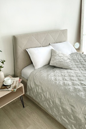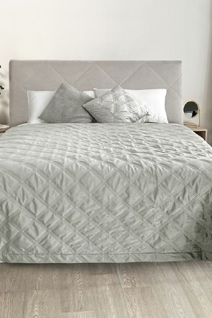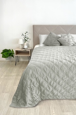 Шикарное стеганое покрывало из велюра. Мягкое и нежное по тактильным ощущениям. Создаст стиль и уют в комнате. Состав покрывала 100% п/э: верх велюр плотностью 210 г/м2, наполнитель синтепон 60 г/м2, подкладка микрофибра 65 г/м2.