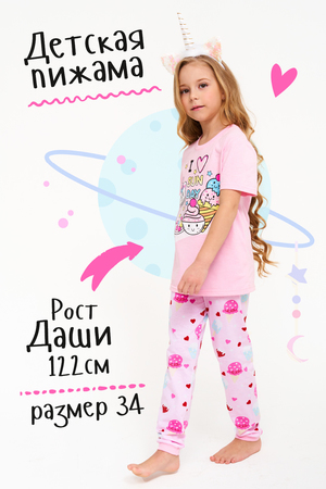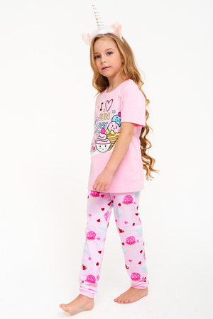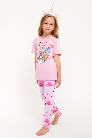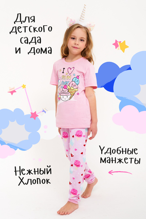 Детская пижама с брюками из 100% хлопка, яркий и современный принт в розовых тонах