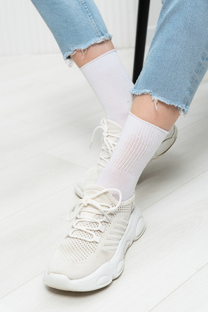 Классические женские носки черного и белого цветов. Высокая резинка. В комплекте 3 пары одного цвета.