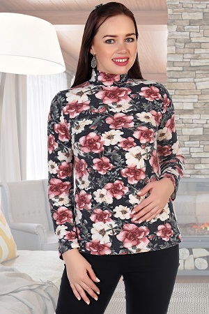 Водолазка женская из вискозы с шерстью. Дизайн в виде цветов, длинные рукава до запястий, воротник-стойка. Размеры от 46 до 62. Имеется возможность заказать данный товар по розничной цене.