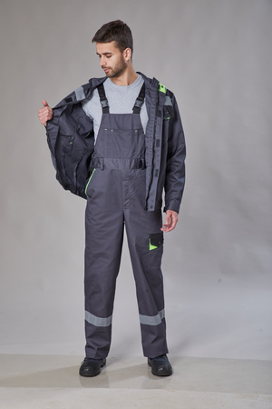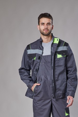 Куртка прямого силуэта, воротник стойка, застёжка на молнию с ветрозащитным клапаном, застёгивающимся на кнопки и липучку. Верхние накладные карманы с фигурным клапаном, нижние карманы в швах, низ куртки регулируется по ширине при помощи хлястиков и кнопок, манжеты на кнопках.