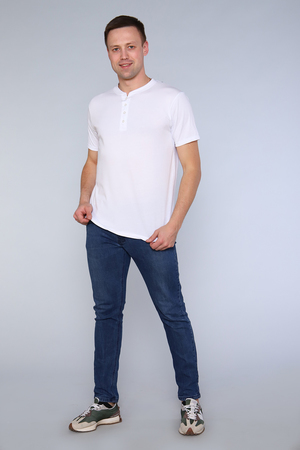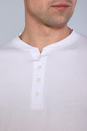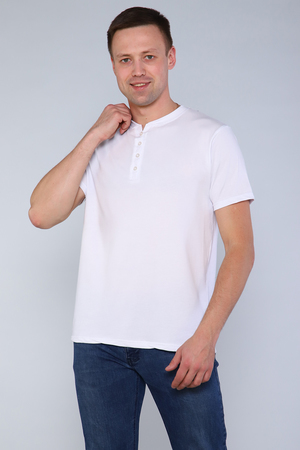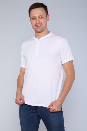Комфортная однотонная футболка. Базовая и удобная мужская одежда для дома и повседневной носки. Стильная футболка с оригинальной горловиной на пуговицах. Футболка приятная на ощупь. Ткань не потеряет свой первоначальный вид после множество стирок. Практичные цвета на каждый день. Подойдет к любому стилю.