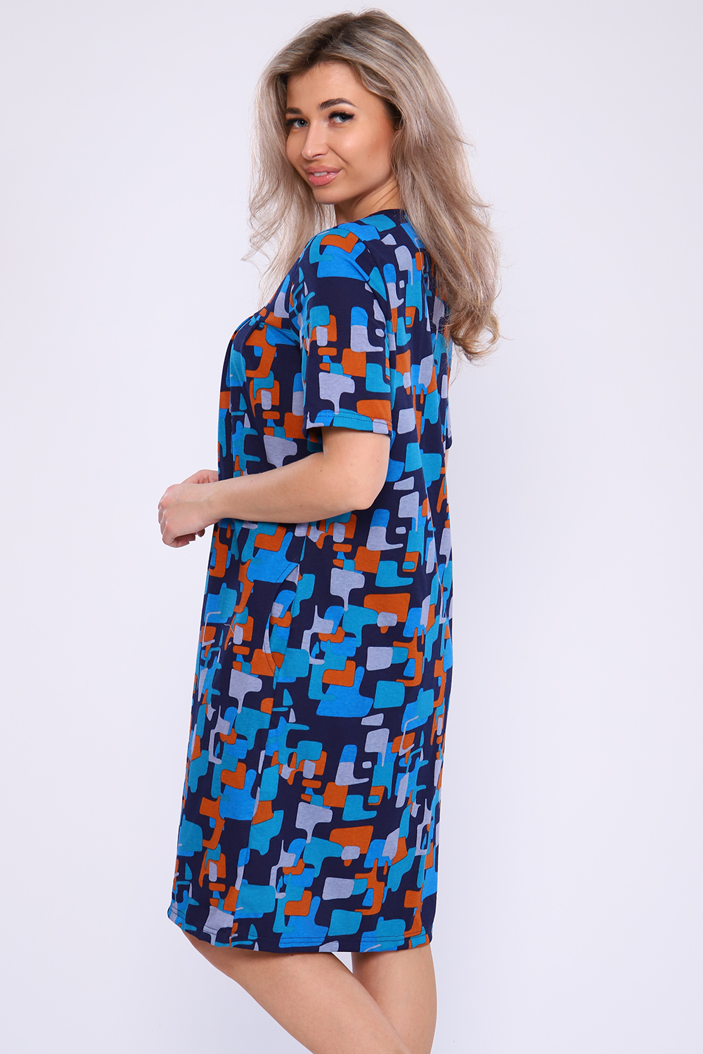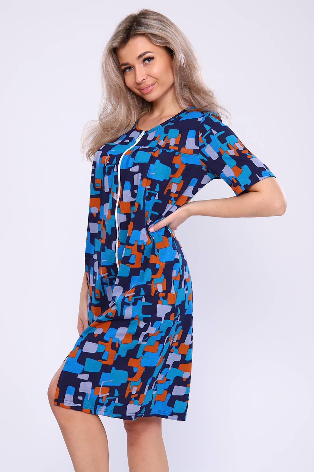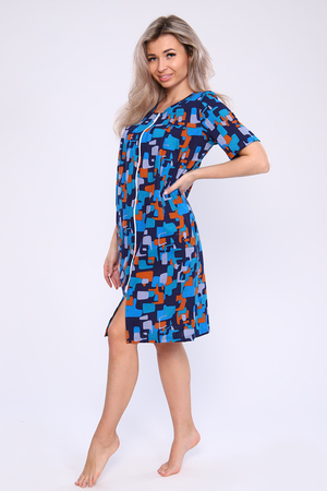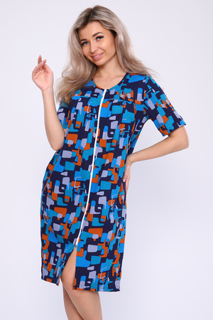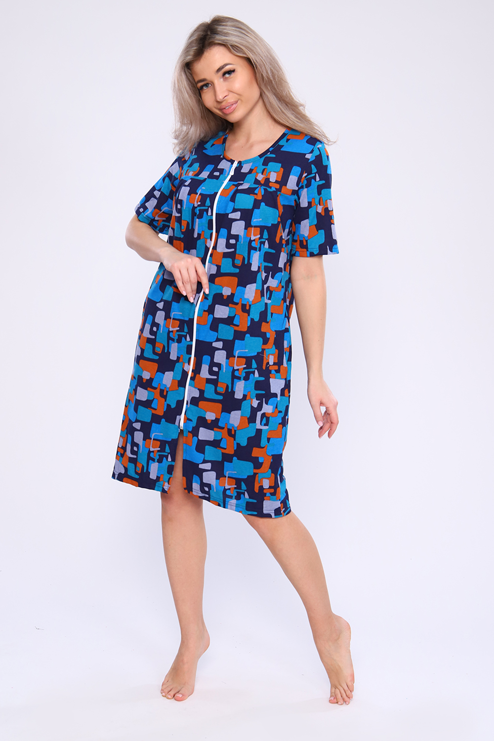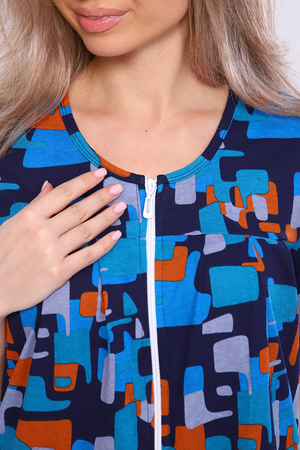 Халат на молнии с короткими рукавами и боковыми карманами. Полочки с отрезной кокеткой и складками над грудью. Неотъемлемый элемент домашнего гардероба.