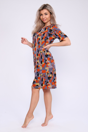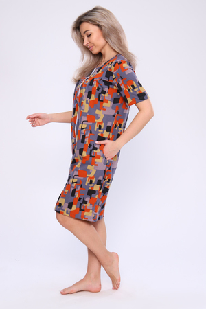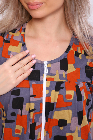 Халат на молнии с короткими рукавами и боковыми карманами. Полочки с отрезной кокеткой и складками над грудью. Неотъемлемый элемент домашнего гардероба.