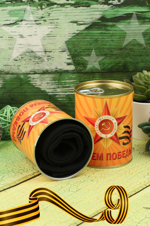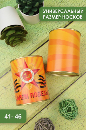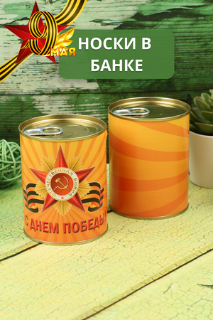 Носки в консервной банке - отличное решение для подарка мужчине на любой случай. Внутри банки носки мужские 1 пара, состав 80% хлопок, 15% полиамид, 5% лайкра, универсального размера 41-46. Использование высококачественного материала позволяет коже "дышать", а добавление небольшого количества синтетических нитей делает носки долговечней. Носки в консервной банке с принтом "С днём победы!" отлично подойдут для подарка мужчине на 9 мая.