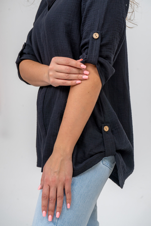 Женская туника - рубашка в стиле oversize выполнена из воздушного и опрятного к телу 2-х слойного жатого муслина. Материал идеально дышит, практически не ощущается на теле и быстро сохнет при намокании. Тунику дополняет стильный рубашечный воротник, рукав 3/4, паты с расстёгивающимися пуговицами, с помощью которых Вы можете носить модель в разных вариациях. Новая стилевая интерпретация сделала рубашку одной из базовых вещей, которая с разной одеждой смотрится неодинаково и всегда интересно и свежо. Хлопковая рубашка подойдёт взрослым и подросткам. Великолепно будет смотреться дома, на прогулке, на празднике, в школе и на пляже. Модель такого плана идеально подойдёт и в качестве подарка для себя и своих любимых! Стирать муслиновые вещи нужно только в теплой воде при температуре не выше 40°С.