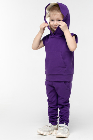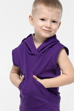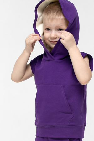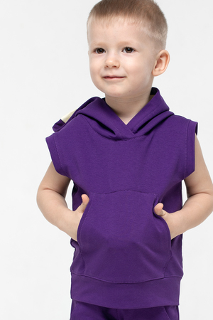 Майка с капюшоном выполнена из материала футер, который большей своей частью состоит из хлопка. Свободная посадка не стесняет движения. Подойдет как для занятий спортом, так и в качестве домашней одежды.