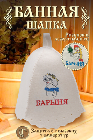 Шапка для бани изготовлена из натурального войлока и имеет универсальный размер, что делает ее удобной для ношения в бане или сауне. Головной убор защитит вас от перегрева во время СПА процедуры. Банная шапочка имеет красивую качественную вышивку "Барыня".