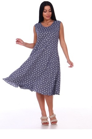 Сарафан женский расклешенный. Сарафан выполнен из ткани пике трикотаж. Имеет расклешенный силуэт от груди. Горловина и пройма обработаны окантовкой. Низ изделия обработан краевой. По бокам карманы.