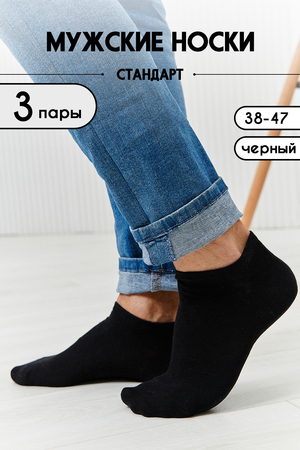 Классические короткие носки для мужчин. Комплект 3 пары черного или белого цвета.