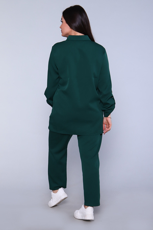Женский костюм состоит из двух предметов, удобными однотонными брюками на резинке и однотонной туникой рубашечного покроя с двумя накладными нагрудными карманами. Такой костюм не стыдно будет надеть в гости, на работу или просто на вечернюю прогулку. Прекрасно сочетается как с туфлями, так и кроссовками.