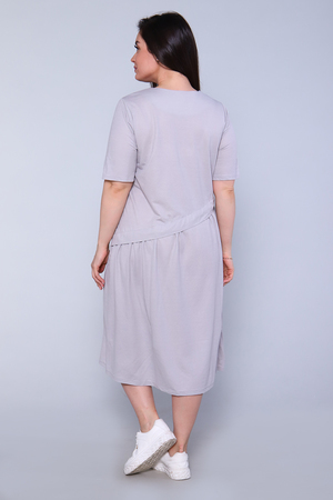 Ткань на платье чуть тянется, струится. Берите по размерной сетке. Она соответствует изделию. 58 немного узковато в груди, ношу 56-58 из за кармана, который тянет. Цвет светло серый. На жару я не надену, но в 23 градуса будет очень комфортно. В целом очень хорошее платье