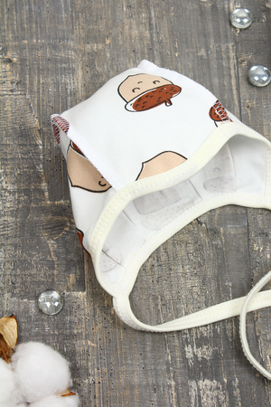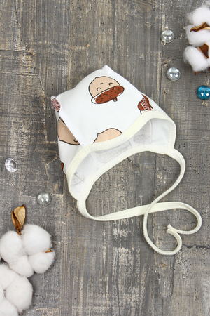 Чепчик из нежной трикотажной ткани-интерлока. Головной убор для новорожденного плотно обхватывает головку малыша. Швы наружу. Состав: трикотаж высшего качества интерлок (хлопок 100%).