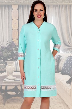 Элегантный халат из махры. Несколько вариантов расцветки, кружевные вставки на рукавах и снизу, застегивается на пуговицы, длина до коленей