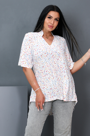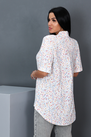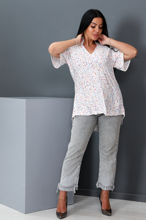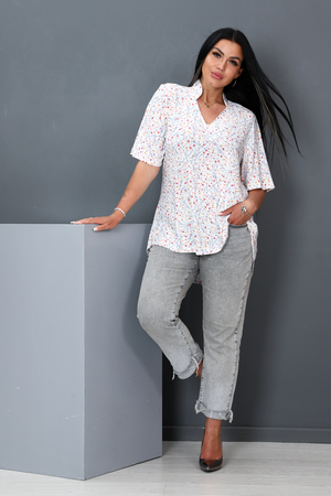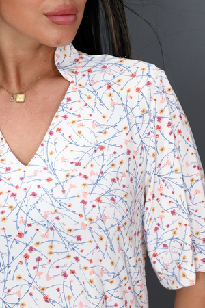 Туника женская расклешенного типа, V-образный воротник, рукав 3/4, задняя полочка длиннее передней. Легкая и удобная.
